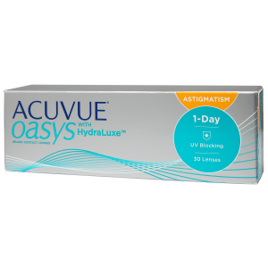 ACUVUE OASYS® 1-DAY for ASTIGMATISM Brand Contact Lenses are designed with Hydraluxe™ Technology to help make the feeling of tired eyes a thing of the past. The design of these daily contacts for astigmatism also help to provide clear, consistent, stable vision all day long—whether you’re relaxing on the couch or playing sports.